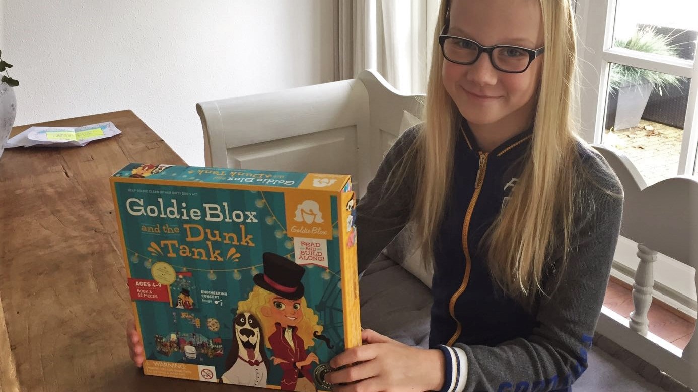 Er wordt vandaag een pakket bezorgd en nieuwsgierig als ze is, zit Mikki er bovenop als ik het pakket open maak. Het is een spel van GoldieBlox en Mikki (9