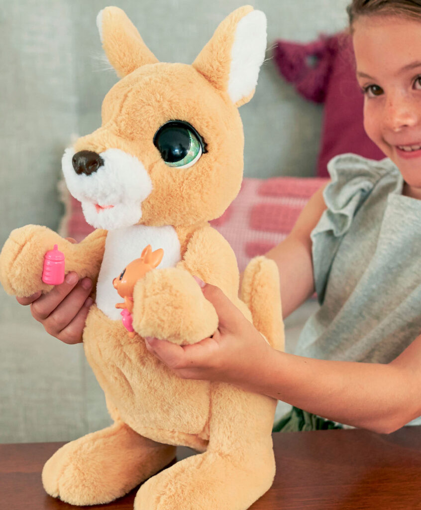 Mama Josie is op dit moment heel populair bij de meisjes en wij begrijpen wel waarom. Wat een schatje is deze zachte, interactieve knuffel. Deze FurReal Mama Josie de kangoeroe interactieve speelgoeddier is lief en heeft 3 schattige baby’tjes! De ene baby is een jongen en de andere een meisje, en de derde is … een verrassing!